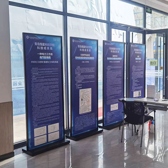 青島恒星學(xué)院麗屏展架立式落地式立屏kt板廣告牌展示牌制作安裝