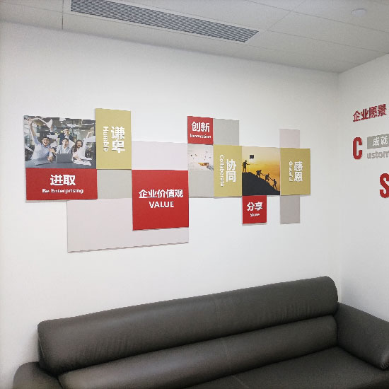 企業(yè)文化墻是企業(yè)精神應(yīng)有之義的體現(xiàn),也是企業(yè)獨特的精神風貌。文化墻是企業(yè)文化建設(shè)的主體,讓墻面“會說話”,表現(xiàn)出行為藝術(shù)感,每一面墻都像是“無聲的詩”,它們深深地體現(xiàn)著濃濃的情意,融知識性、教育性、藝術(shù)性于一體,達到了“潤物無聲”的目的。