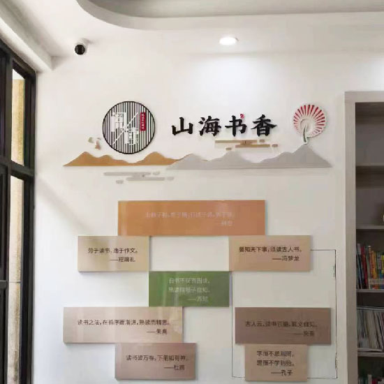 青島嶗山山海書香讀書室文化墻設(shè)計社區(qū)文化墻設(shè)計,街道社區(qū)文化建設(shè)、活動室、讀書室、讀書角文化墻設(shè)計。