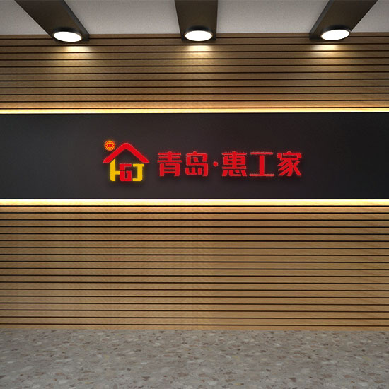 青島惠工家前臺(tái)形象墻設(shè)計(jì)鋁方通文化墻裝飾施工