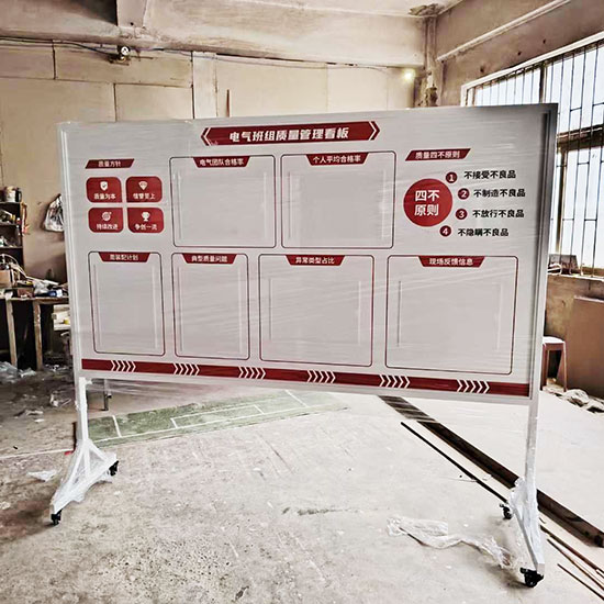 青島車間看板設(shè)計(jì)制作宣傳欄公告車間移動(dòng)管理看板制作,車間管理看板工業(yè)鋁合金移動(dòng)支架室內(nèi)宣傳欄雙面磁性白板公司計(jì)劃,車間看板宣傳欄是生產(chǎn)現(xiàn)場(chǎng)可視化管理的核心工具,設(shè)計(jì)制作需兼顧實(shí)用性、美觀性和企業(yè)文化傳達(dá)。
