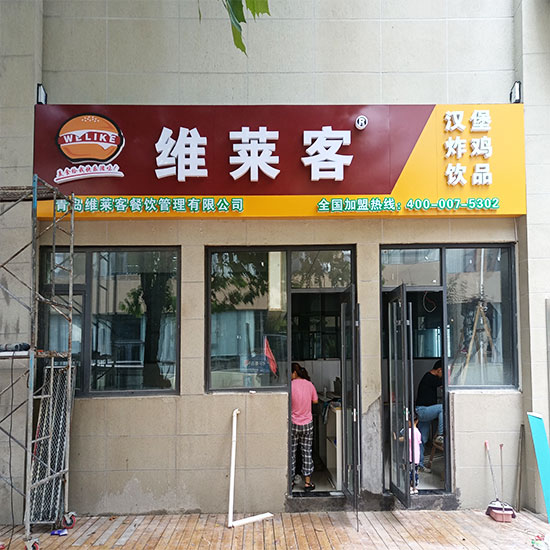 鋁塑板:這是一種由鋁和密度較小的塑料芯材復(fù)合而成的材料,具有質(zhì)量小、剛性好、不易變形、顏色豐富、裝飾性強(qiáng)等特點(diǎn)。鋁塑板門(mén)頭表面平整,色彩豐富,安裝方便,可以安裝各種發(fā)光字,因此被廣泛應(yīng)用于各種門(mén)頭制作中。