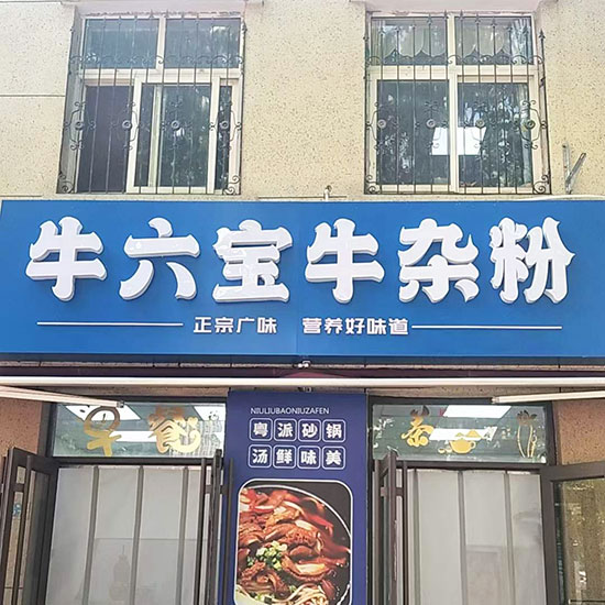 青島牛雜粉餐飲門頭制作安裝無(wú)邊字發(fā)光字制作鋁塑板安裝