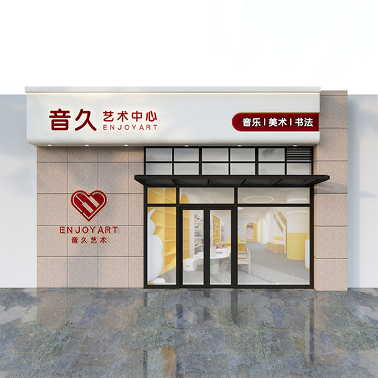 青島音久藝術培訓真石漆門頭設計施工門頭發(fā)光字制作安裝
