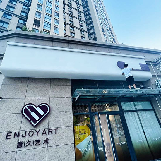 采購:青島音久藝術培訓真石漆門頭設計施工門頭發(fā)光字制作安裝