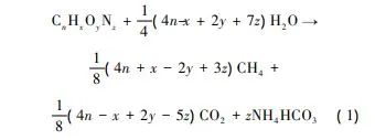 沼渣基本性質包括pH、有機質含量、含水率、碳/氮比(C/N)。易生物降解有機物(CnHxOyNz)厭氧消化過程中的分解反應可用式(1)表示: