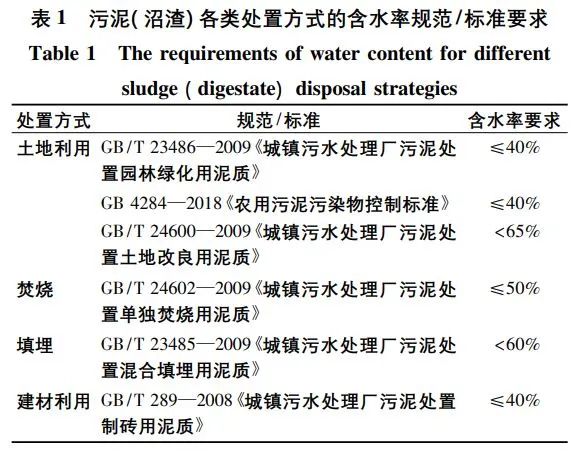 德國污泥沼渣出路中,64%采用干化后焚燒,24%農用,12%用作景觀園林覆土。歐洲其他國家如荷蘭、瑞士已實現污泥沼渣100%焚燒。污泥焚燒后的灰渣磷含量高[(93.1±3.2)g/kg],是污泥沼渣磷含量的3倍(圖2),有利于后續的磷資源回收。磷是不可再生的自然資源,因此,德國2017年通過了對《污水污泥條例》(The German Sewage Sludge Ordinance, Abfallklarschlammverordnung, AbfKlarV)的修訂,要求從污水污泥或其焚燒灰中回收磷,明確提出2029年后含磷量大于20g/kg總固體的污水污泥須采用磷回收工藝,要求從污水污泥總固體中回收50%以上的磷;而污泥沼渣平均磷含量高達35.7g/kg(圖2),適用于“污泥沼渣焚燒-磷回收”的技術路線。盡管我國污泥厭氧消化處理量逐年激增,近10年從2814t/d增至6944t/d,但目前普及率僅為3%,遠低于領先國家50%的水平。據不完全統計,我國污泥沼渣利用途徑中,29%為堆肥土地利用、27%為焚燒、20%為填埋、16%為建材利用、8%進行其他處理。現階段,為滿足國家標準與規范(表1),大部分污水廠添加大量藥劑(如CaO,10%~15%,質量分數)進行“污泥調質-板框壓濾”,以降低沼渣含水率到60%~65%后直接填埋。但大量藥劑的添加不僅增加了污泥量和運行費用,而且不利于資源化利用。若采用干化技術,可將污泥沼渣含水率由80%降至40%,體積可減少3倍,而熱值可提高約2.5倍,將極大地降低運輸成本,并為后續的焚燒或資源化處置提供基礎。干化+焚燒有望成為最有效的污泥(沼渣)處置技術工藝之一。